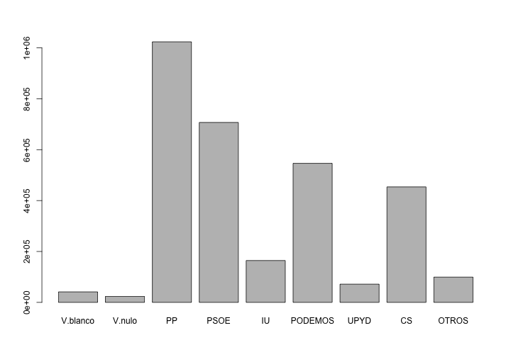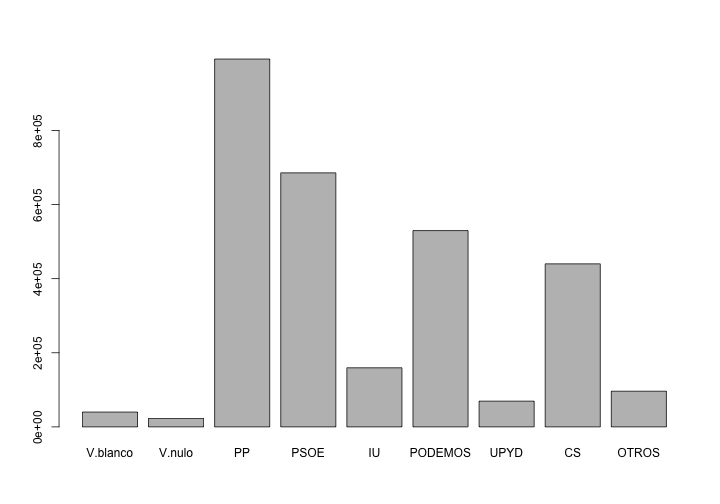En primer lugar, el número de votos obtenidos por cada uno de los principales partidos sería el siguiente: